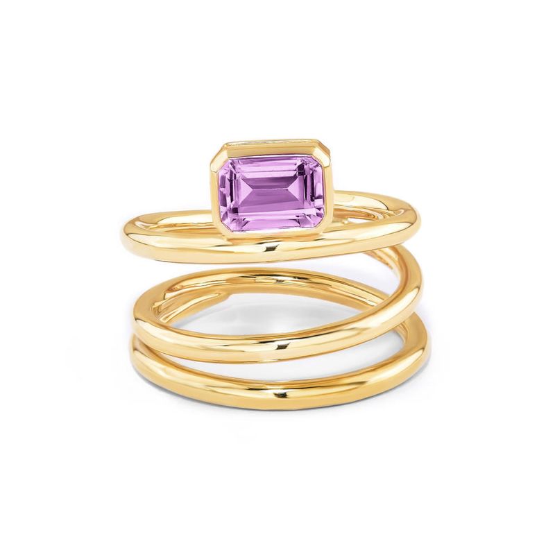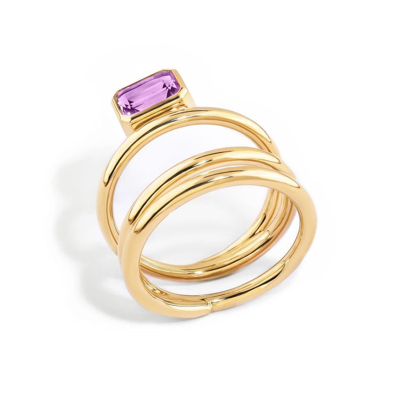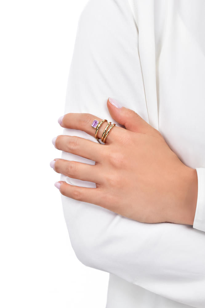 Anel em ouro amarelo com ametsta.ESPECIFICAÇÕES TÉCNICASJoia em ouro 18kAcabamento: polidoPedra: 1 ametista com total de 0,90 quilate