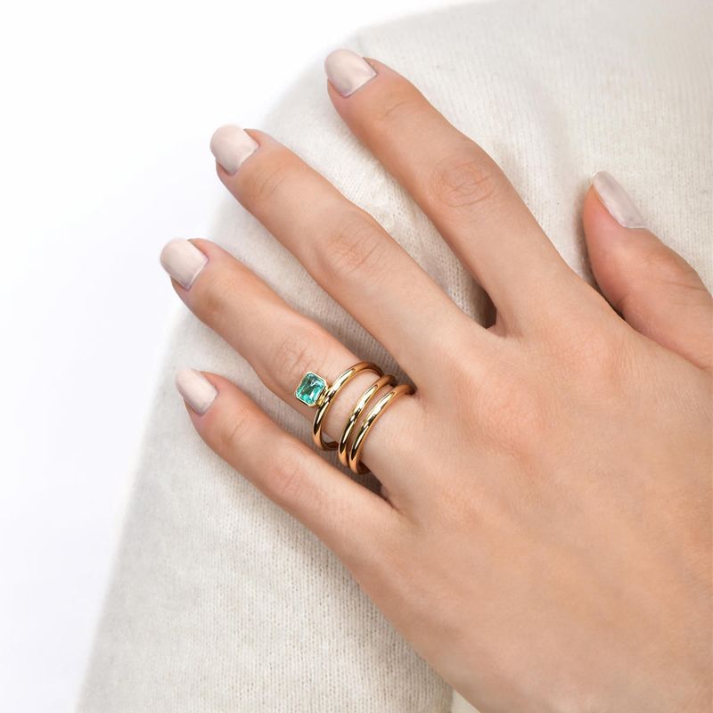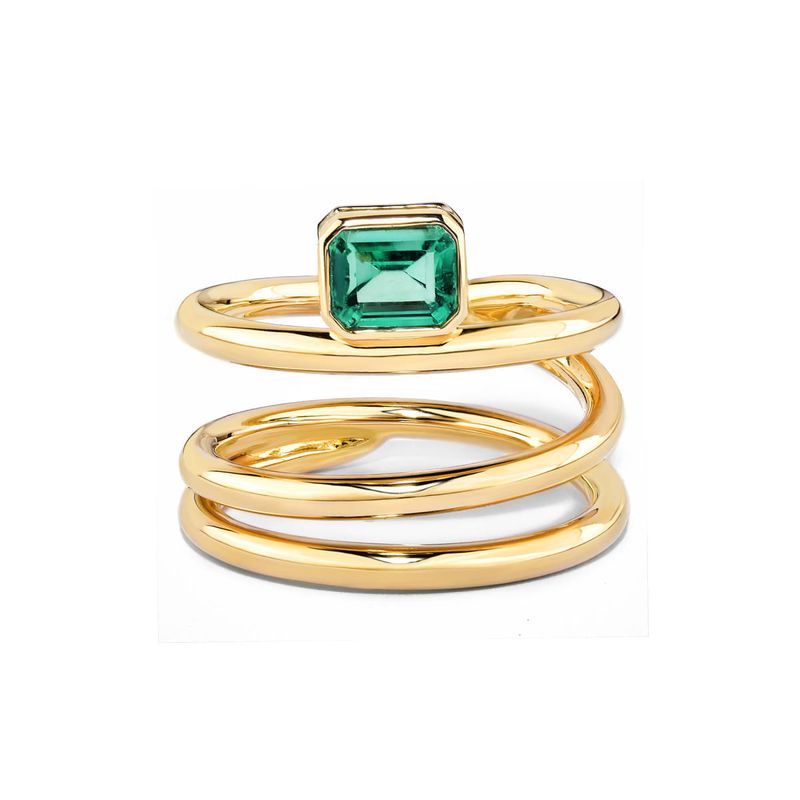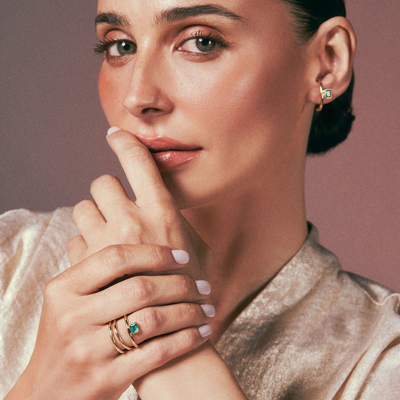 Anel em ouro amarelo com esmeralda - Emerald Cut