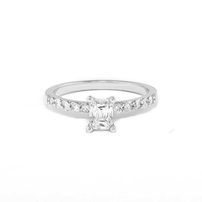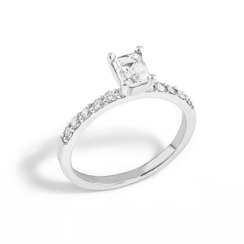 Anel em ouro branco com diamantes.ESPECIFICAÇÕES TÉCNICASJoia em ouro 18kAcabamento: polidoPedra: 1 diamante com total de 0,57 quilate e 10 diamantes com total de 0,21 quilate