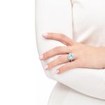 Anel em ouro branco com topázio azul e diamantes.ESPECIFICAÇÕES TÉCNICASJoia em ouro 18kAcabamento: polidoPedra: 1 topázio azul com total de 4,29 quilates 26 diamantes com total de 1,23 quilate