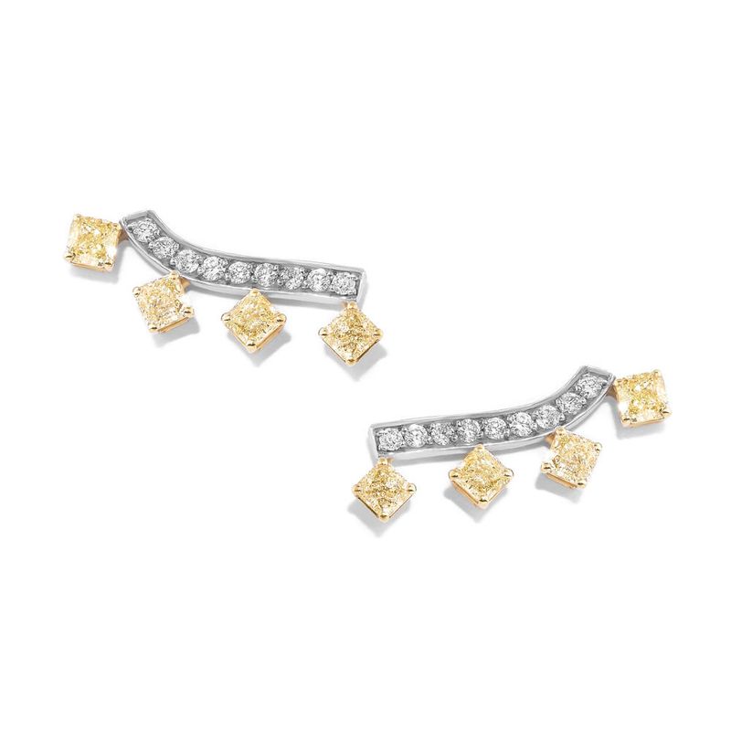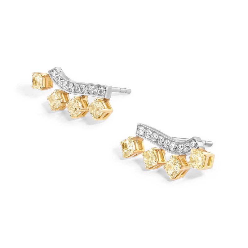 Brinco em ouro branco com diamantes amarelos e diamantes.ESPECIFICAÇÕES TÉCNICASJoia em ouro 18kAcabamento: polidoPedra: 8 diamantes amarelos com total de 1,49 quilate e 18 diamantes com total de 0,27 quilate