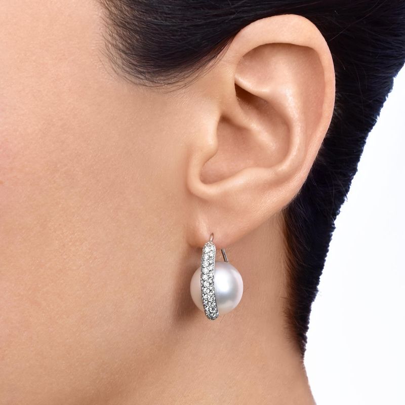 Brinco em ouro branco com perolas e diamantes - South Sea