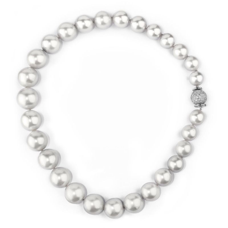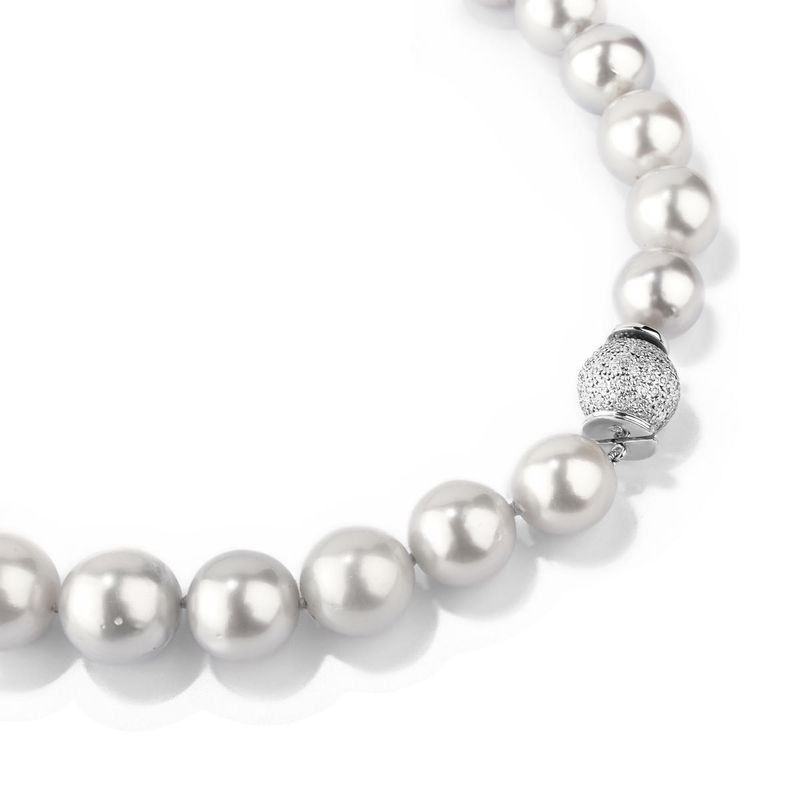 Colar em ouro branco com pérolas e diamantes. ESPECIFICAÇÕES TÉCNICAS Joia em ouro 18k Acabamento: polido Pedra: 28 pérolas e 121 diamantes