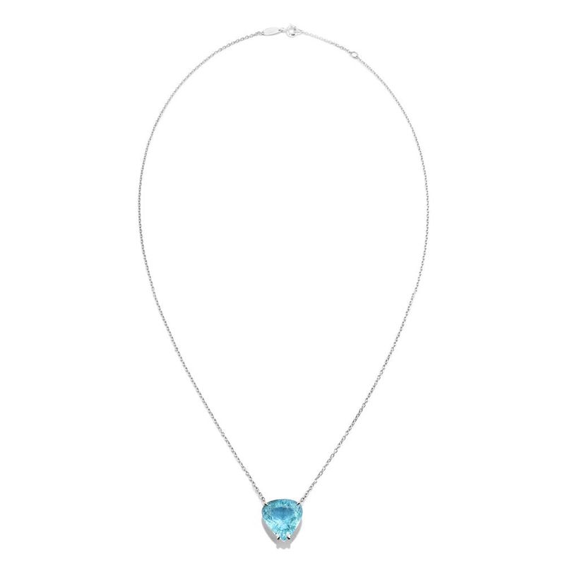 Colar em ouro branco com turmalina paraiba.ESPECIFICAÇÕES TÉCNICASJoia em ouro 18kAcabamento: polidoPedra: 1 turmalina paraíba com total de 6,42 quilates