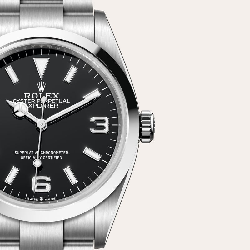 O mostrador é a face distinta de cada relógio Rolex, e o principal responsável por sua identidade e legibilidade. Os numerais 3, 6 e 9, característicos do modelo são, de agora em diante, preenchidos com material luminescente de longa duração, que emite uma luz azulada como os apliques e os ponteiros. Assim como todos os relógios Rolex, o mostrador do Rolex Explorer é projetado e fabricado pela própria marca, em grande parte à mão, para garantir a perfeição.Quando o acabamento Sun é terminado, a cor é aplicada ao mostrador por PVD (Physical Vapour Deposition) ou galvanoplastia. Uma fina camada de verniz dá ao mostrador o acabamento final."Quando o acabamento Sun é terminado, a cor é aplicada ao mostrador por PVD (Physical Vapour Deposition) ou galvanoplastia. Uma fina camada de verniz dá ao mostrador o acabamento final."Quando o acabamento Sun é terminado, a cor é aplicada ao mostrador por PVD (Physical Vapour Deposition) ou galvanoplastia. Uma fina camada de verniz dá ao mostrador o acabamento final."Quando o acabamento Sun é terminado, a cor é aplicada ao mostrador por PVD (Physical Vapour Deposition) ou galvanoplastia. Uma fina camada de verniz dá ao mostrador o acabamento final."