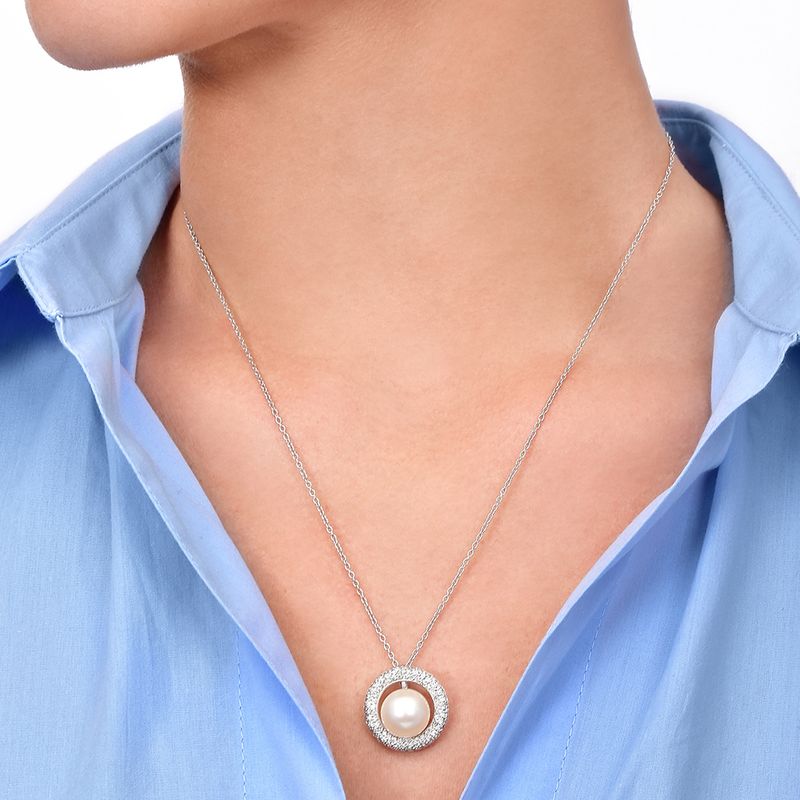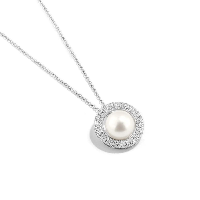 Pingente em ouro branco com pérola e diamantes.ESPECIFICAÇÕES TÉCNICASJoia em ouro 18kAcabamento: polidoPedra: 1 pérola e 99 diamantes com total de 0,54 quilate